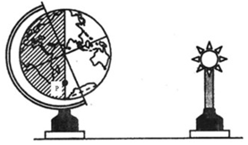 2、单选题 将一盏电灯放在桌子上代表太阳,在电灯旁放置一个地球仪代表地球,拨动地球仪模拟地球运动。
