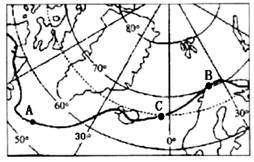 2.B点所在半岛的斯堪的纳维亚半岛,其峡湾属于冰川侵蚀地貌,A错误;C点位于0°经线以西,但西半球的地理范围是160°E-180°-20°W,所以C点不位于西半球,B错误;结合图示可知由A点向B点的最短航线是两者之间的劣弧,方向先向东北再向东南。C正确;C.由A点向B点的最短航线是先向东北再向东南;A点位于北半球西风带,盛行西南风。B点位于北半球极地东风带,刮东北风。故选C。