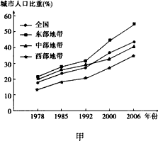 (1)读甲、乙两图,分析改革开放以来我国城市化进程的主要特点。