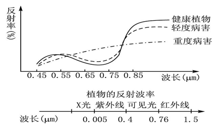 1、单选题 在遥感技术中,可以根据植物的反射波谱特征判断植物的生长状况。读图回答以下各题。