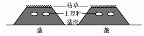 5、单选题 广西大力推广马铃薯稻草覆盖免耕栽培技术。具体做法是(见下图)当地农民将土壤堆高起垄,在垄中的畦沟播种马铃薯及肥料,然后覆盖稻草,待马铃薯萌芽出土后再将垄沟的泥土覆盖在稻草上。马铃薯为喜光作物,要求地温较稳定(12-15℃适宜),喜水分多且透气性好的土壤,宜施有机肥,忌渍水。据此回答下列各题