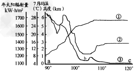 A.①年太阳辐射量? ②7月均温? ③地势?
