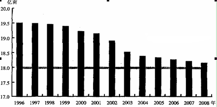 目前,我国人均耕地仅有1.43亩,不到世界人均水平的40%。下图为“我国耕地资源数量变化统计示意图”。