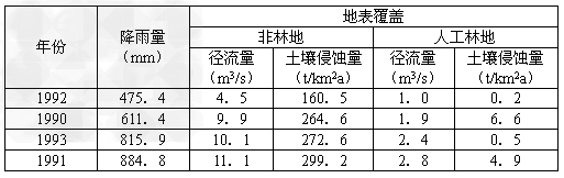 B.降雨量相同时,人工林地的土壤侵蚀量大于非林地