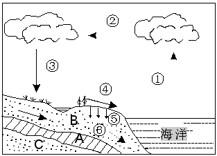 4、单选题  读“水循环示意图”(图4)(图中数字表示水循环环节),回答问题。