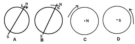 3、单选题 下列关于地球自转方向的画法正确的是