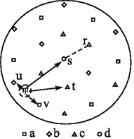 3.甲区域的居民可以沿图示箭头到达附近城市寻求服务总是采用就近原则,甲区域的居民同等线最近的是u,t与同等级城市相比离甲较远,一般不会到达,B对。