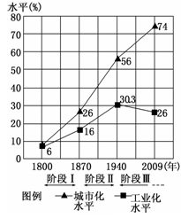 1、单选题 图为某国工业化、城市化进程比较图,回答下列问题。