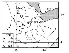 材料二:下图为埃塞俄比亚及周边示意图。埃塞俄比亚首都亚的斯亚贝巴座落在中部高原的山谷中。海拔2350米,是非洲海拔最高的大城市。年平均气温16℃,年均降雨量1237毫米。