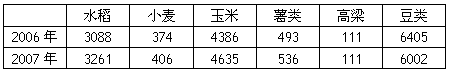 1、单选题 下表反映了我国某省级行政单位2006、2007年农作物种植面积(单位:万亩)变化情况。