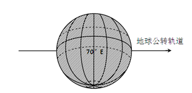 (2)日期为夏至日6月22日,70°E为午夜0点,北京时间为120°的地方时,为3:20,70°E以西至日界线为6月21日。