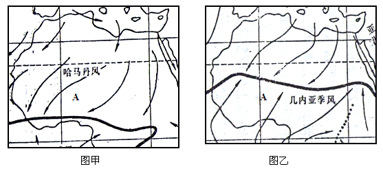 材料一:图甲和图乙是某地不同季节的大气环流图,两图中的粗黑线是热带辐合带。