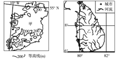 A.甲地农业地域类型主要是商品谷物农业,乙为水稻种植业