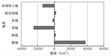 材料二:1995~2005年西辽河流域各土地利用类型数量的变化。