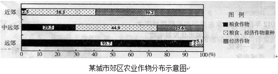 1、单选题 读下图,造成该城市郊区农业种植模式的最可能因素是