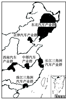4、单选题 作为中国汽车工业“弯道超车”的最好机会,电动汽车的发展备受关注。我国应将发展纯电动汽车上升为国家战略,从而实现我国汽车工业的跨越式发展。结合“我国六大汽车产业分布图”,完成下列问题。