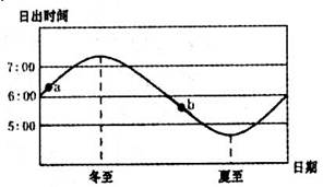 2、单选题 某同学对我国某地(地处120°E)每天的日出时间进行了一段时间的持续观测与记录,绘成下图。读图完成下列问题。