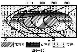 5、综合题 下图为岩层地质界线和等高线示意图(图4—10),读图回答: