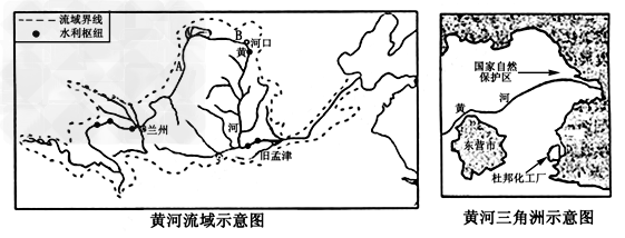 (2)黄河从A流向B,流量出现_____的变化,AB河段部分区域在春秋季节出现____现象。