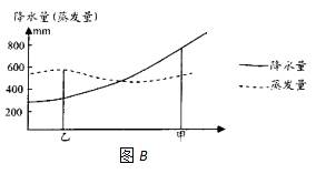 材料二?图B中甲地到乙地降水量与蒸发量的关系示意图。