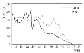 2、单选题  读我国某省2003年与2030年人口年龄结构比较图,完成1—2题。
