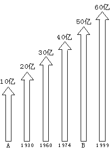 (1)图中A为__________年,B为__________年,人口从10亿增长到20亿用了__________年,从50亿增长