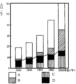 2、综合题 读“世界城市人口比重的增长图”,回答下列问题: