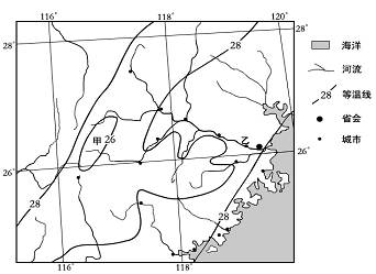 (1)图中甲、乙两地相比,气温较低的是_______________地,其主要影响因素是______________________________