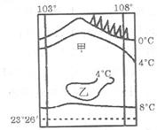 1、单选题 读“我国局部1月份等温线分布图”,关于甲地叙述正确的是
