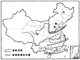 (3)在图中用笔绘出季风区和非季风的界线,并注明界线所通过的山脉名称。
