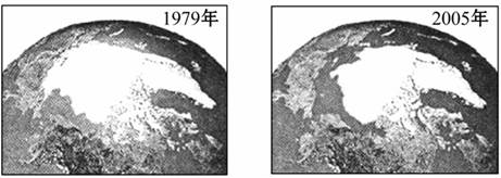 材料二? 1979年和2005年北冰洋冰雪覆盖面积的卫星照片(下图)。