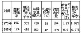 小题1:上述资料反映,导致该地区20年来粮食产量下降最主要的原因是?(?)