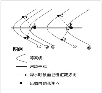 1、流域内各点的径流汇流方向与等高线垂直,汇流速度与地表坡度有关。据图判断
