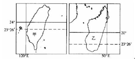 A.甲岛的面积大于乙岛? B.甲岛所在地区的时间晚于乙岛