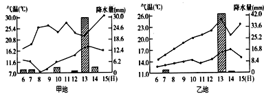 D.该时间段内,甲地日最低气温变化幅度大于乙地
