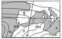 1、单选题 下图为某地某季节海平面等压线分布图。读图完成下列各题。