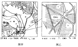 (1)图甲是该小组草绘的A城所在地区聚落分布示意图,分析该地区公路选址的合理性。
