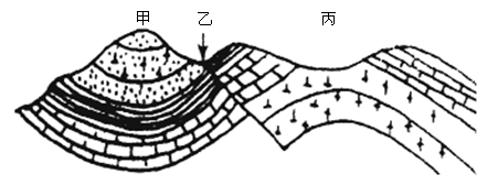 (2)丙地地质构造顶部岩层缺失的原因是 。