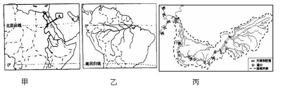 2、综合题 甲、乙、丙三图为世界著名大河的地理示意图,读图回答。(共12分)