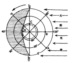 2、单选题 在图中恒星日、太阳日示意图中,表示太阳日的是