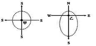 小题2:当乙地物影朝正南时,北京的地方时恰为23时,则乙位于北京的哪个方向