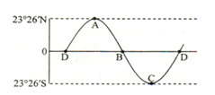 1、单选题 读下面太阳直射点移动图判断,当太阳直射点位于A点时( )
