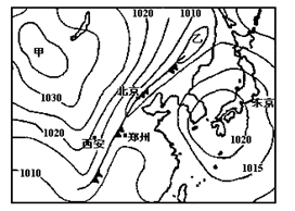 (1)影响甲处的天气系统是___________,在该系统的控制下,甲处的天气特点是___________。