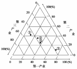 1、单选题 下图表示①②③④四个地区三大产业的就业构成,其中工业化程度最低的是