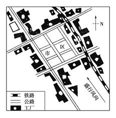(1)从图中可以看出,工业区分布在城市的外围,其原因是?