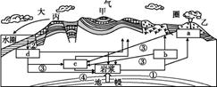 3、综合题 读“岩石圈物质循环示意图”,回答下列问题:(7分)