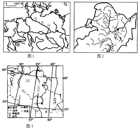 (1)根据等温线的分布,分析图3地区的地形特征,并分析图3丙和图2丁两处地貌特征的主要差异及其形成的主要地质作用。( 8分)