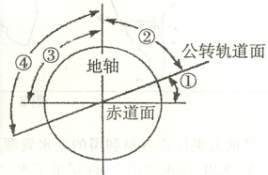 点评:本题难度低,解题的关键是能结合图示判断地轴与黄道面的交角与黄赤交角的差异,注意地球自转产生的地理意义和公转产生的地理意义的区别。
