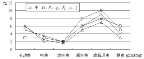 4、单选题 某地政府拟开办一家工厂,选定甲、乙、丙、丁四地进行工业成本比较,读图完成下题。