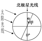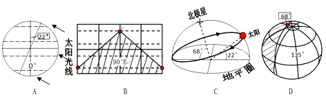 2、单选题 读图(图中α的角度为22°),回答问题。